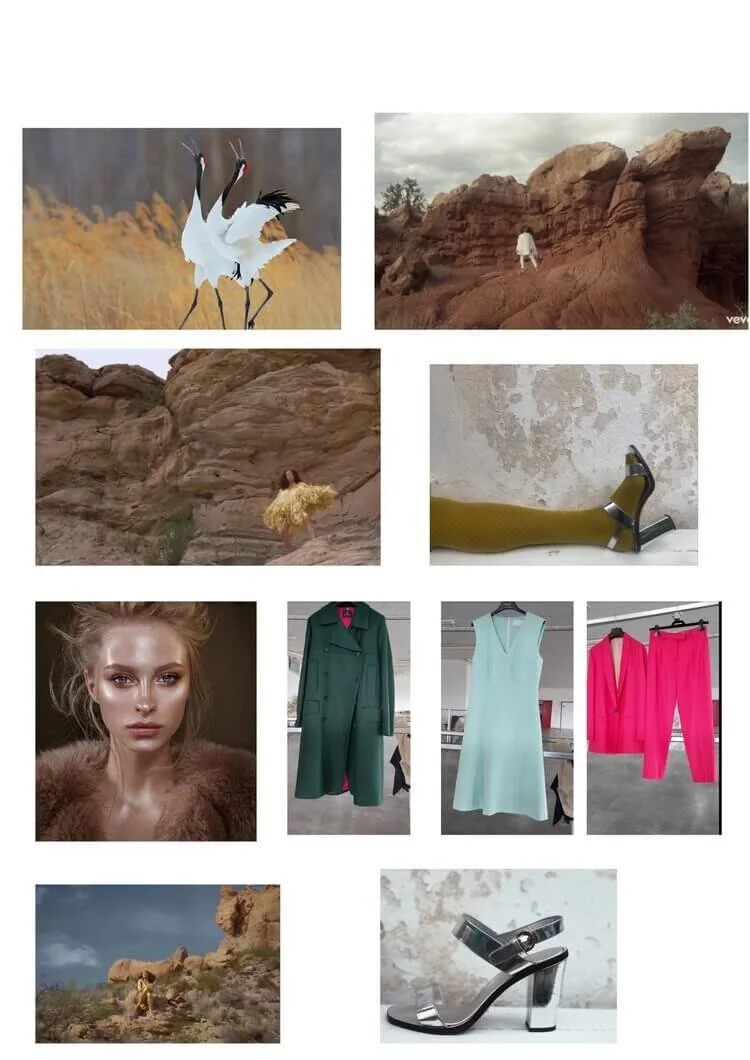 Pela sua irreverência orgânica e estilo inimitável, pensamos que Melanie Smith (@truth_comes_first_by_melanie) seria a stylist ideal para o projeto. Afirmando-se ser “Emoção. Sustentabilidade. Arte. Estilo e verdade”, Melanie concordou e abraçou o projeto. A primeira inspiração que partilhou connosco - quase como se de um moodboard imersivo se tratasse - foi o videoclipe de “Cranes in the Sky” de Solange. O vídeo sobrepõe peças haute couture com paisagens al naturel, criando a fusão perfeita de elegância e robustez.